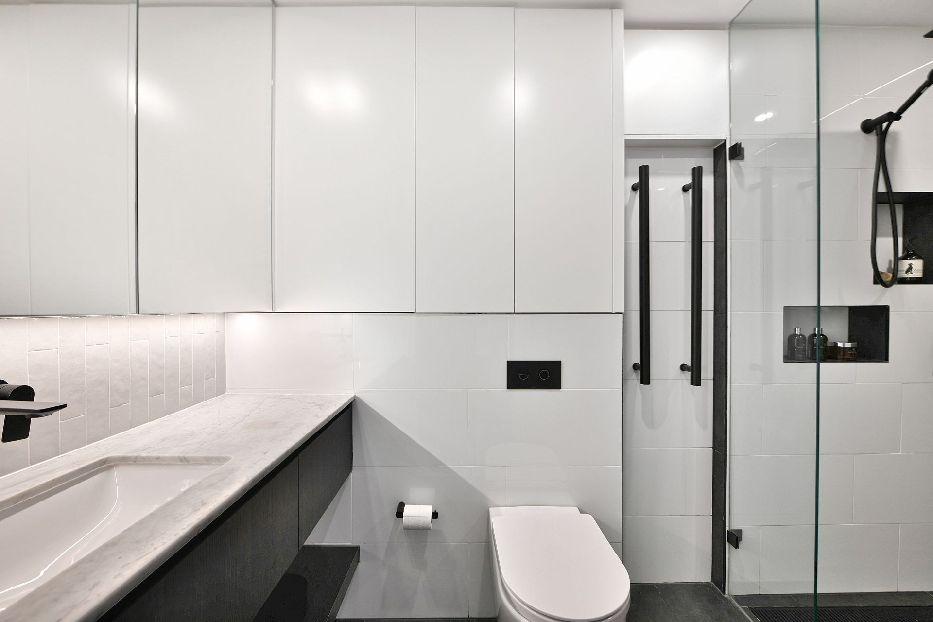 The apartment has been refurbished by the current owners and the result of this flair for design is second to none. No expense has been spared. High end inclusions, marble accents complemented by sophisticated black, grey and neutral tones have been introduced to create a timeless, elegant ambiance.