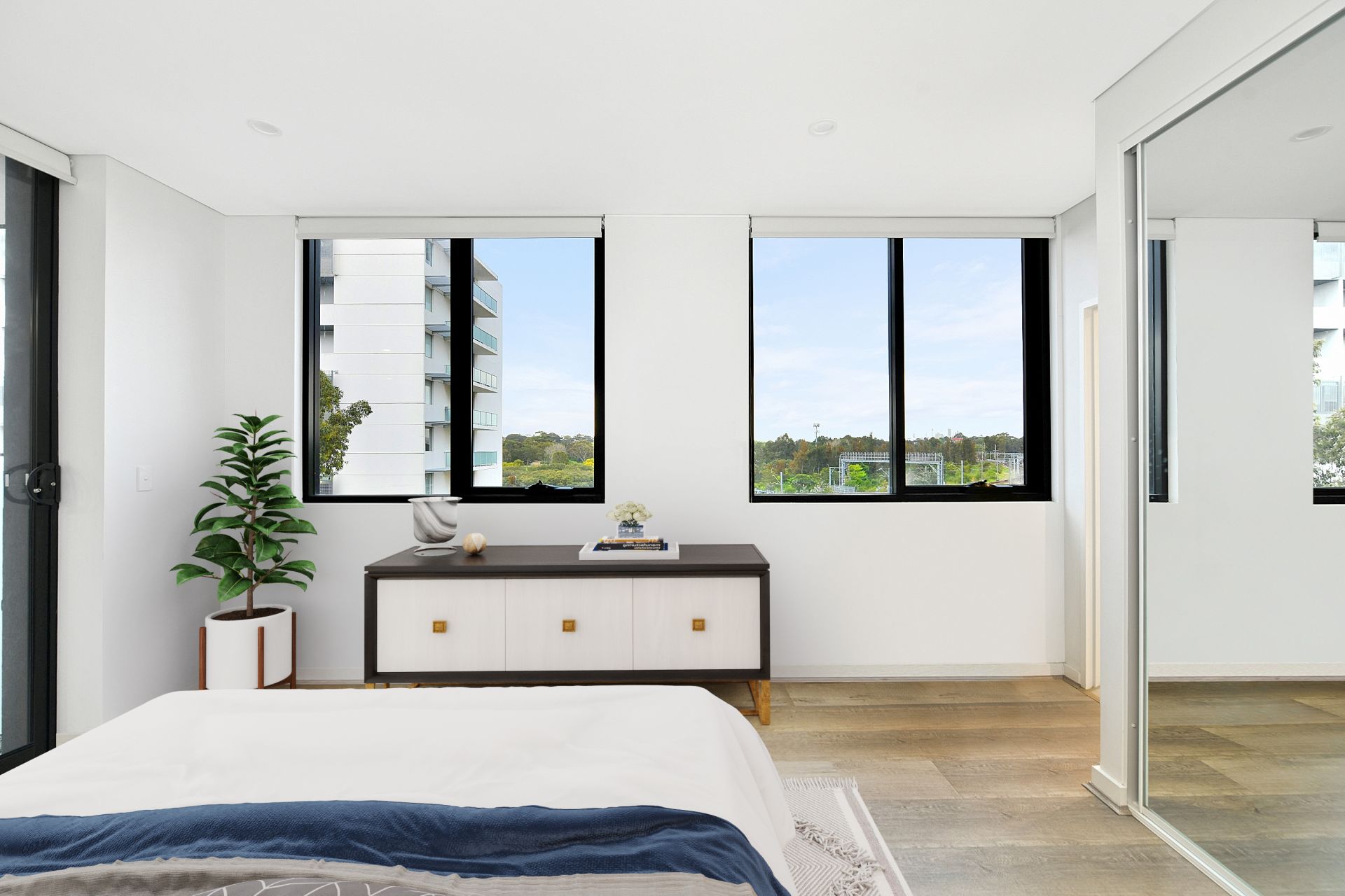 - The apartment is equipped with premium motorised blinds throughout.